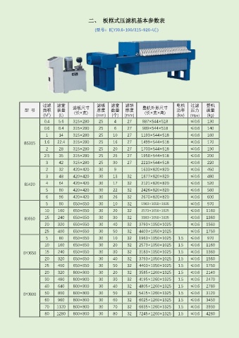 二、  板框式叼嘿软件免费下载基本参数表
