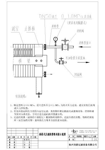 1、额定进料力≤0.8MPa;最大进料压力≤1.0MPa.为防止压力过高,建议安装回流阀
